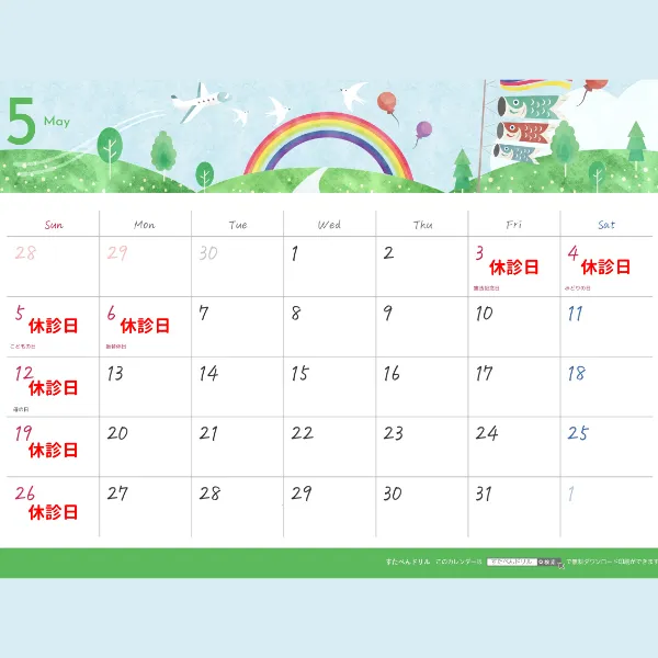 5月の休診日の案内です🎏