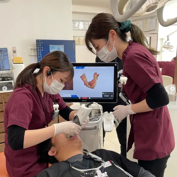 プライムスキャンとういう機械でお口の中の型取りをしていく練習をしています!