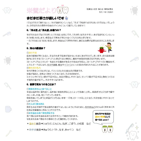 次号の栄養だよりは3月発行予定です。 お楽しみに!